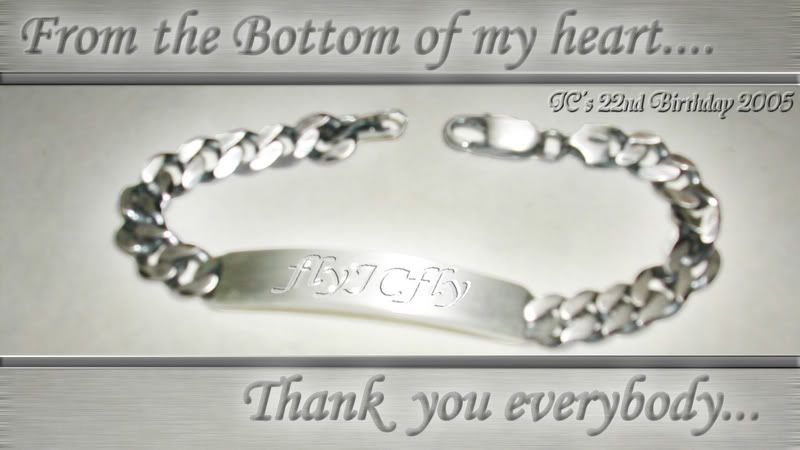 huifen holding a piece of cake on top of it a lit candle in her hands. Haha, okok, had to admit that the whole celebration wasnt a really BIG thing but really, its the thought that counts. And that is enough to really make my face turn red, maybe u guys cant see coz of the tan i just had on that day lol. I really love the present u guys got me too. Engraved bracelet!! Honestly, i have never felt anything like this for a very long time... thank you all for everything... =)