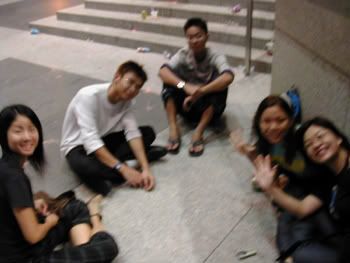 Zijia when she said it was rated M18. First time i watched a M18 movie, too much gore, uninteresting and predictable plot. Cant deny that the jokes were quite funny, but the gory scences were just, disgusting. So much for Chucky, his bride, and his seed. Hahaha, ok i guess everybody was stunned, but it was all in the name of fun =P. 2am, Went to look for a nice place after the show to settle down and chill. Managed to find a spot by Boat Quay beside the Singapore River under UOB building. Woooooo, wat a breeze we had there from the river nearby. Alicia teached us how to play a very interesting game using poker cards. Abit difficult to explain here, but basically, u won't feel sleepy playing it coz u need to memorise and be alert! It'll be a very good game to be introduced for FOC'05! Yee Fang was really HIGH thru out the game. Every little while, doing abit of singing and dancing, haha wat can i say? Shes a natural!