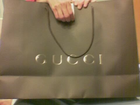 gold metal locklets and the Gucci logo all over, abit, errr... obiang. Well, can consider it a tradition le, she goes head over heels for handbags, well, as long as she likes it =)